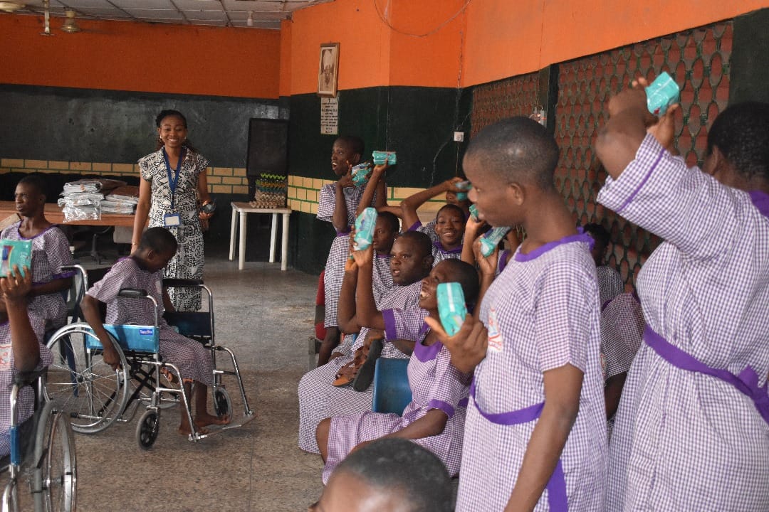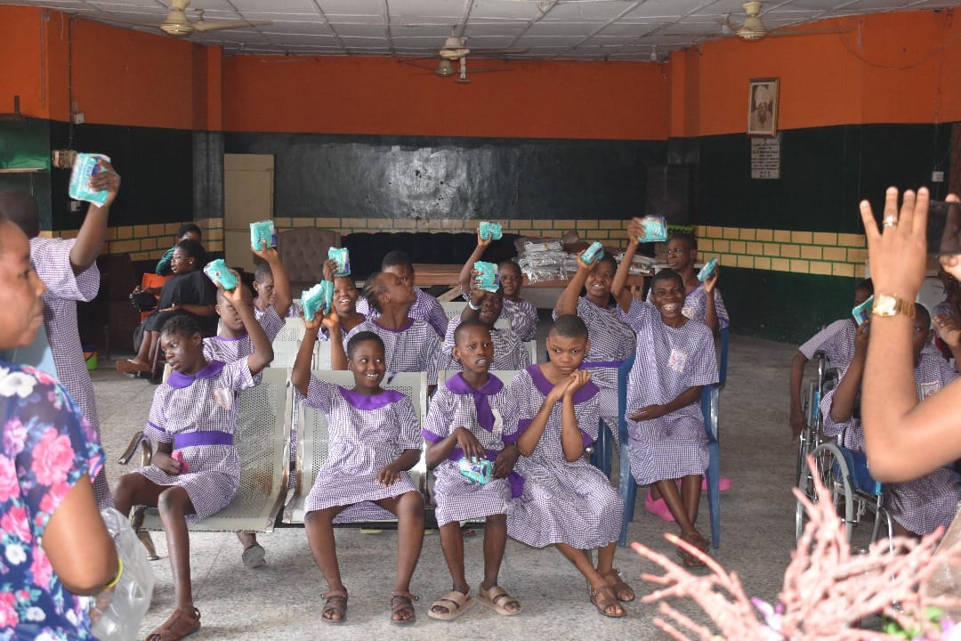 Today HDI distributed pads to girls with disability at Modupe Cole Memorial Child Care and Treatment Home/School.